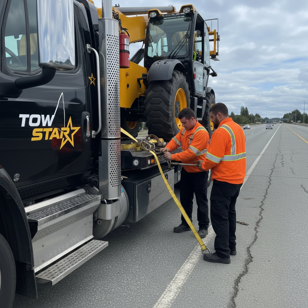 Drivers call us for jackknifes, dead batteries, blown tires, and stuck trailers in mud near Boundary Bay farms. We also help fleets at industrial yards in Delta, including Ladner BC loading areas. If the issue is the trailer, our trailer towing options can keep the load stable. For work gear, choose equipment towing with the right tie-down points and care.